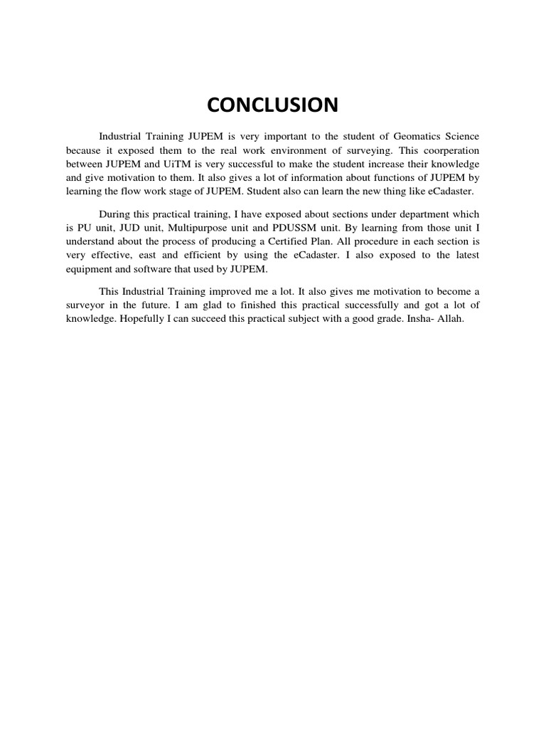 Conclusion for Industrial Training Report